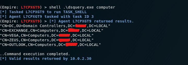 Windows trusted binaries are dropped into disk to assist with the discovery of other systems in the network that will be used for lateral movement. Usage of these tools evades detection as it is legitimate Active Directory functionality. The adversary discovers various assets (Domain Controller, Exchange, Hosts etc.) that exist in the network.