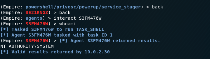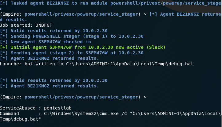 A recon on the compromised host is conducted to enumerate privilege escalation opportunities. The threat actor identifies one service that is running with SYSTEM level privileges and is configured with weak permissions. The group modifies the binary path of the service in order to execute an arbitrary payload the next time the service starts.