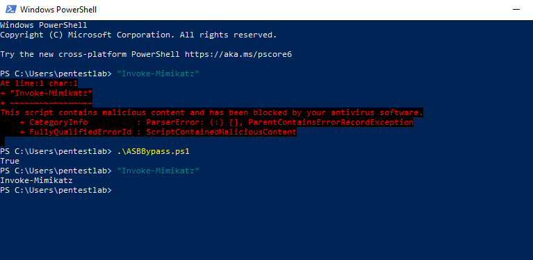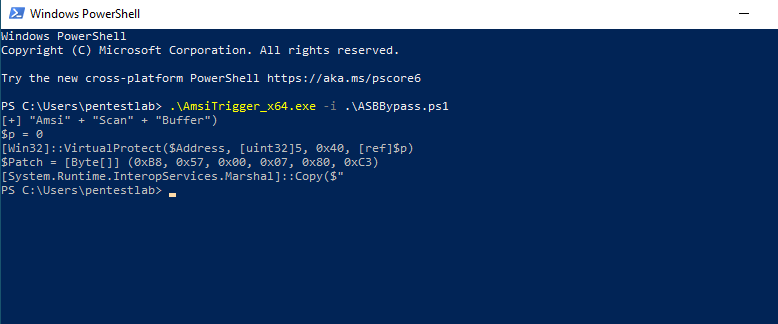 [System.Reflection.Assembly]::LoadFile("C:\Users\pentestlab\ASBBypass.dll")