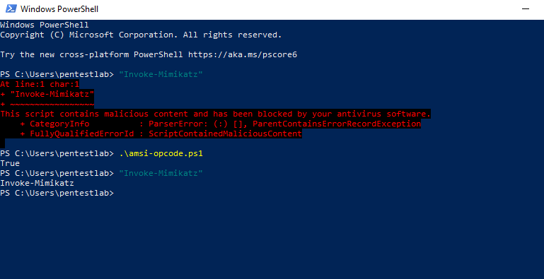 An alternative bypass was released by Paul Laine which modifies the instructions of the AMSI_RESULT function in memory to prevent sending the content to windows defender or to any other AMSI provider.